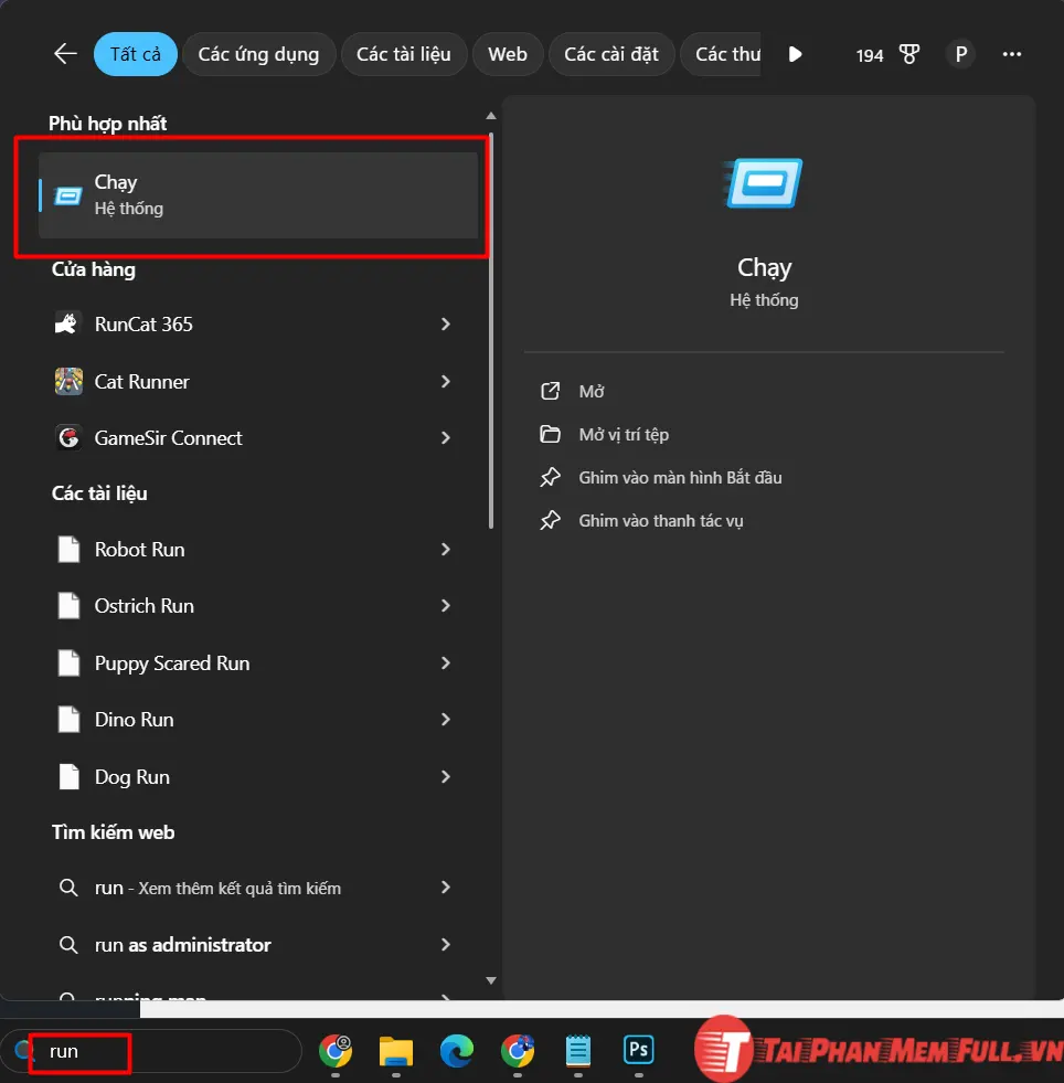 - Có thể dùng tổ hợp phím "Window + R" để mở bảng "Run" nhanh hơn