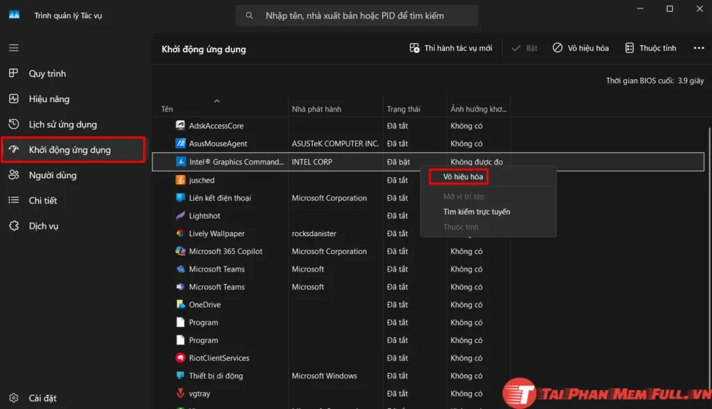 💡 Lưu ý: Việc chọn "Disable" không hề xóa phần mềm đó khỏi máy, nó chỉ ngăn phần mềm tự động chạy khi mở máy thôi. Khi nào bạn cần dùng, cứ click mở như bình thường nhé.